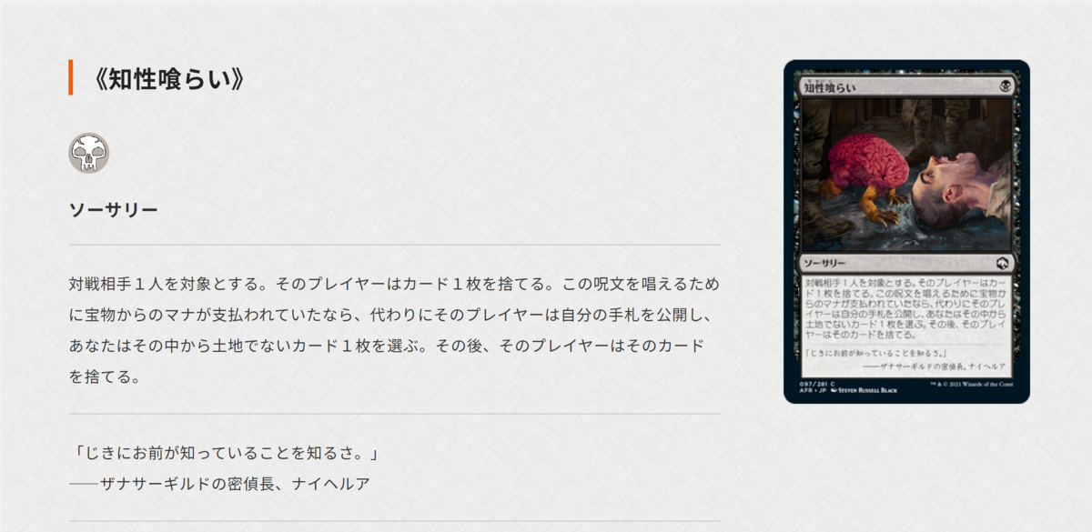 例を挙げよう。私自身はトレーディングカードゲーム、『マジック・ザ・ギャザリング』を通じて僅かばかりD&Dに触れており、この「知性喰らい」というカードをよく使っていた。なので、コイツが映画にドタドタ出てくるだけで 、「あ!知性喰らいだ!」ってクスリときちゃう。